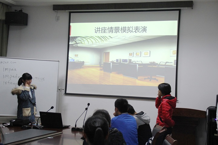 第一组的动态萌系头像惊艳全场。接下来的第二组成员则以邀请函的制作表明培训中的收获,而讲座情景模拟表演既在风趣的扮演中逗得学员们开怀大笑,又将社交礼仪学以致用;小组成员姚捷就特意写了一篇新闻稿并宣读来展她的学习成果。第三组通过一段视频“说”出了他们的学习成果。此外,其他小组也都进行了自我展示。