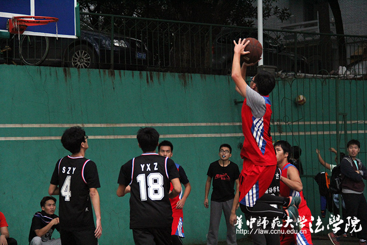 法学院讯(通讯员刘雨馨 摄影吴桐)11月20日下午四点,2015年文华杯篮球赛法学院对战外国语学院的比赛在西区篮球场举行。经过四节比赛的激烈较量,法学院男篮以46:25的大比分赢得这场比赛。