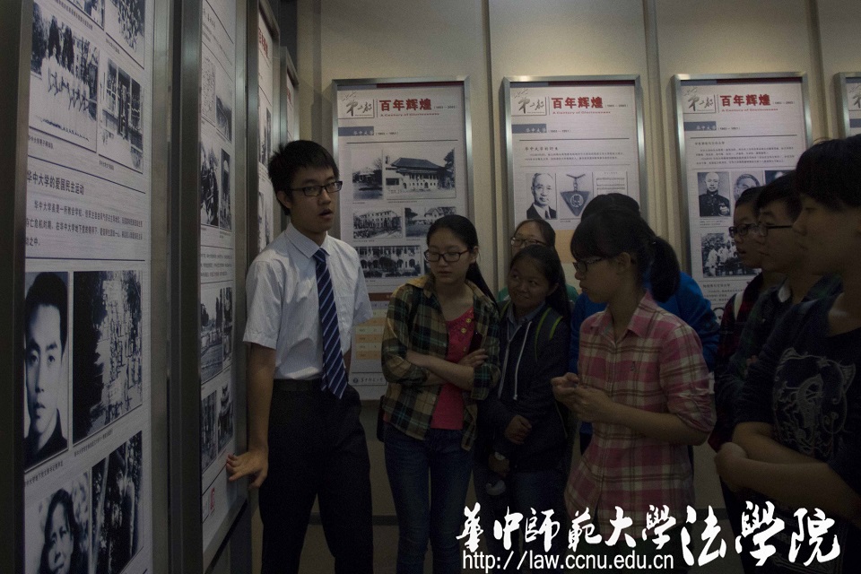在第一个板块“印象华师”中,讲解员介绍了华师前校长、著名历史学家章开沅,知名校友光未然、万国权等人。“百年辉煌”中展示了现今仍然留存但已经泛黄的校友通讯录、毕业纪念册等物品。浓重的历史气息给同学们留下了深刻印象,这些实实在在的文字和记录,见证了一个时代的发展。“十年跨越”则介绍了正在蓬勃发展的华师——飞速进行的信息化和国际化建设,不断增强的综合实力都让大家对华师的未来充满期待。