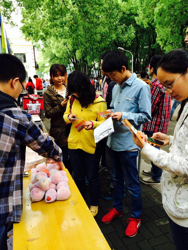活动形式采取通过手机重量来判断小商小贩们的称是否标准。活动组织者细心向同学们讲解了黑心商家是如何使用黑心秤,并教大家如何使用手机这一“神器”,引导同学们到指定地点秤出自己手机的重量,将重量亦小卡片的形式提供给学生,也录入到微信系统,学生可以向系统发送消息获取手机重量,以后学生可以通过自己的手机来实现维权。