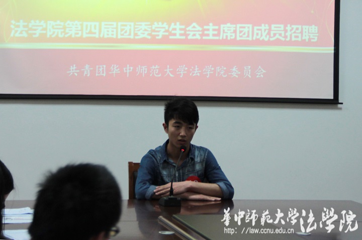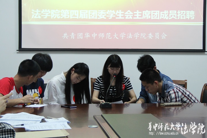 法学院讯(通讯员方帅 摄影魏晶晶)5月15日下午,法学院第四届团委学生会主席团换届面试环节在法学院二楼会议室举行。