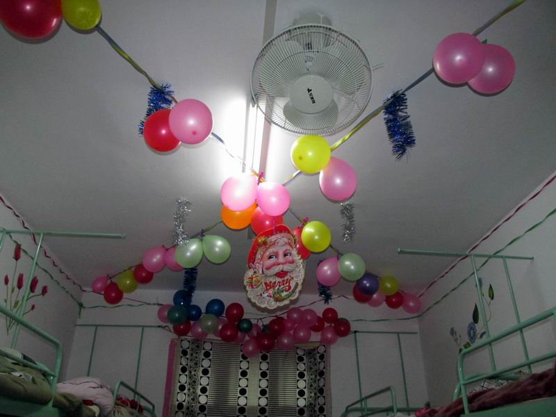 此次联谊活动主要由男生邀请女生为其寝室进行装饰。中午开始,各小组成员都对自己负责的宿舍进行了精心的设计和装饰,女生们用他们睿智的头脑,灵巧的双手,在男生寝室掀起了各种不同的“风”:产区1109从QQ标签上找到灵感,亲手绘制各种字画创造出一股温馨风、1104用彩带以及五颜六色的气球展现喜庆风、1101寝室则粘贴出大量形状不一的手绘小饰品而布置出一股童年风、1103寝室则用暗色调墙纸张显出华丽高雅风等等。