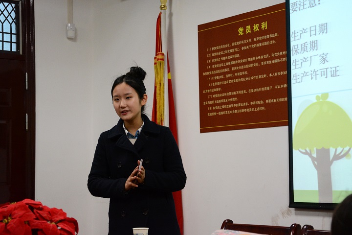 四点半,法律课堂活动准时开始。本次宣传活动主讲人是刘潇阳同学,她凭借具有童趣的幻灯片成功吸引了小朋友们的注意力,她向孩子们详细介绍食品的生产日期、保质期、生产厂家、生产许可证等重要的食品消费安全知识,并与小朋友们积极互动,其中王朗越等小朋友十分积极地回答刘潇阳同学提出的问题。