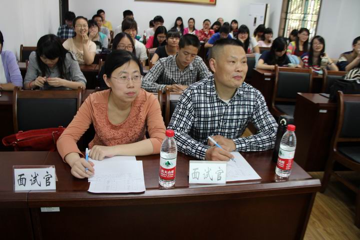 第一个进行面试的是2012级法经班的许晓曼,她抽中的问题是:为何要参加此次志愿活动。她简单的思考了一下后便给出了回答:以前曾经参加过圣兵爱心社的工作,为人比较热心,参加过多项志愿活动,同时对刑法和刑事诉讼法比较感兴趣,因而参加社区矫正活动更能发挥专业上的优势。随后,面试官杨彩霞提问道:以往的工作中获得哪些经验可以在此次活动中运用。许晓曼回答说:“以前在圣兵爱心社的财务部工作,因而培养出了细心、严谨的性格,相信在志愿工作中会有所帮助。”