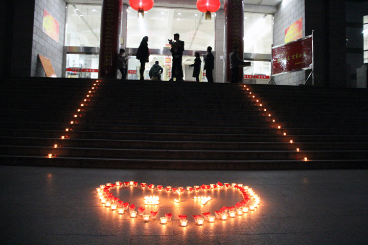 站在桂香园二楼前方很远就能看到楼梯两旁摆放着一排蜡烛,梯前是男生们精心用蜡烛摆放的燃烧的心形,里面写着“3.7”。据了解,入场时,每位女生都将抽到一个抽奖号码,还有一朵红色玫瑰。