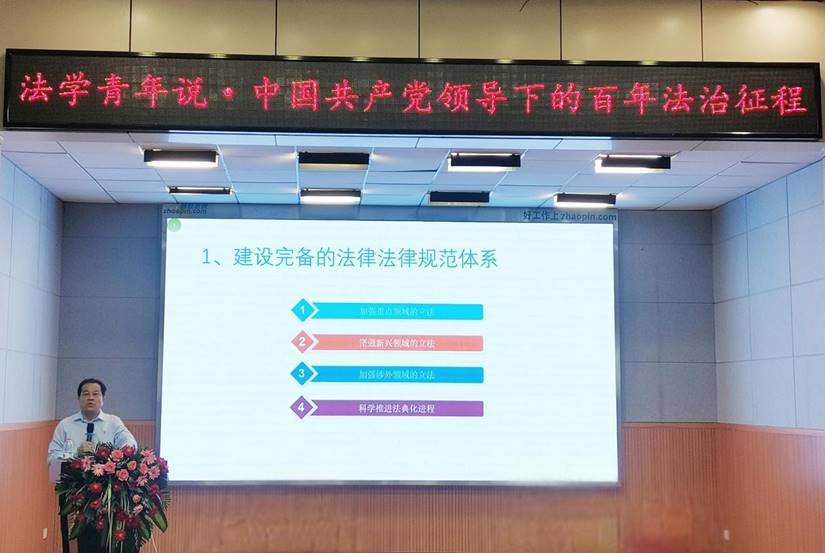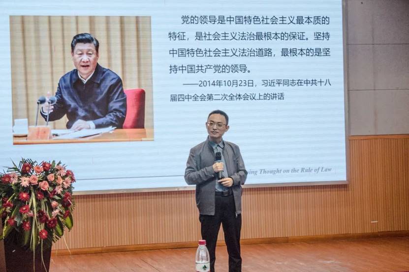 中南财经政法大学法学院青年讲师刘磊以《习近平法治思想中党对法治工作的全面领导》为题,从习近平法治思想中党领导法治工作的基本原理,党对法治工作全面领导的主要内容,全面从严治党与加强党对法治工作的领导三个方面作出详细阐释。