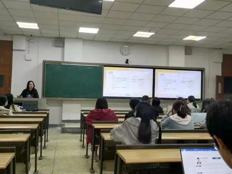 任海柔(线上)从申请概述、多维评价、背景提升、资源整合四个维度展开“2023 FALL美研申请分享”,为有意向申请美国高校的同学们分享了院校和专业选择、申请时间线和文书材料准备等多方面的经验。她还结合自身申报经历,鼓励同学们在申请目标院校的同时积极考虑相关奖学金和学生岗位的申请。
