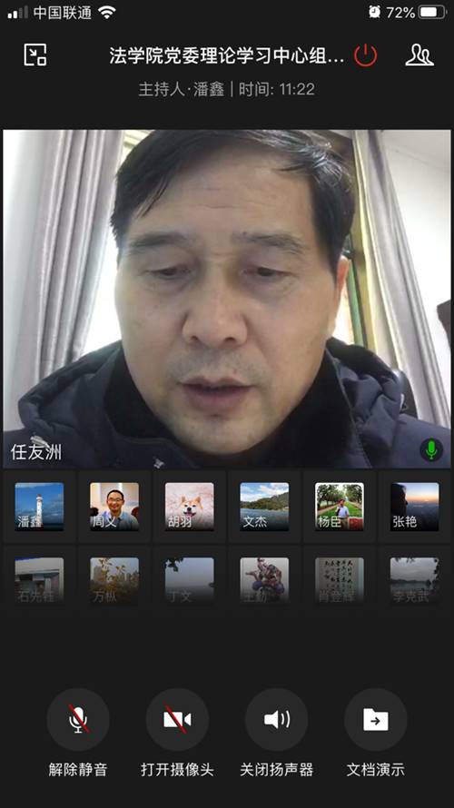 杨臣领学习近平总书记关于意识形态工作的重要论述,并汇报本单位师生思想动态及意识形态研判情况。杨臣指出,学院高度重视意识形态工作,在主题教育方案和巡察整改方案中,把意识形态工作作为专门的整改措施,并将夯实意识形态责任制列入学院2020年工作要点,多种方式加强学院意识形态工作。总体来看,学院师生在意识形态领域中都能够遵守相关法律法规,在大是大非问题面前能够保持清醒和理智,思想状况比较平稳。
