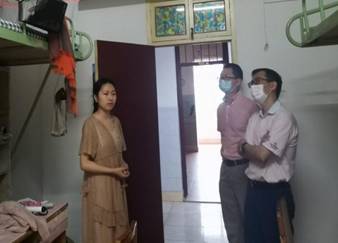开学在即,新生即将进入校园,为深入了解并保障新生入学后的住宿情况,9月10日下午,学院党委书记杨臣、党委副书记万枞,2020级本科生辅导员林聃以及迎新志愿者们,共同走访了2020级研究生宿舍国交8栋和西区5栋以及本科生宿舍东区12栋和西区7栋,为新生入住“把好最后一道关”。