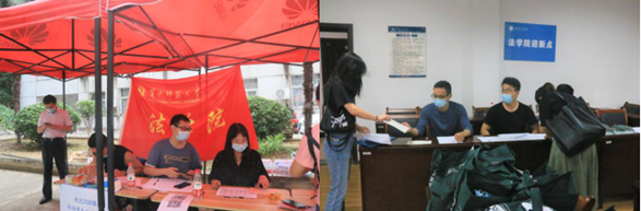 截至9月12日中午12时,法学院2020届本科生新生和研究生新生已陆续抵达桂子山,在志愿者协助引导下,顺利完成新生报到相关手续,开启在桂子山的求学生涯。