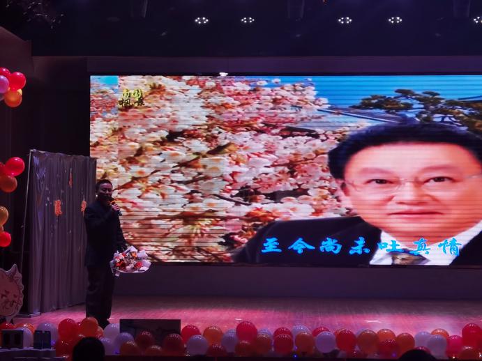 老师们文采飞扬,不甘下风,高宏贵老师用一首《北国之春》寄托了对故乡的深情,声音浑厚有力,赢得了师生们的喝彩。