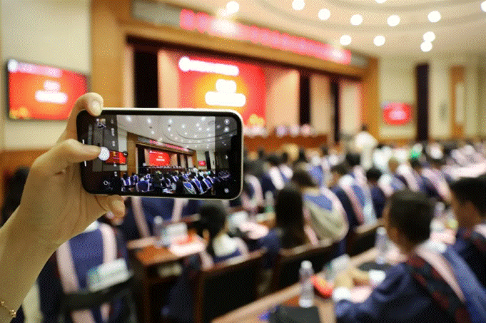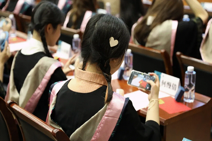 在毕业生代表发言环节,2020届毕业生代表袁菁敏、2021届本科生代表曾茂辉、2021届研究生代表姚婕分别上台发言,讲述他们在华中师范大学、在法学院成长的点点滴滴,感恩老师的悉心栽培,表达临别之时的依依不舍和美好祝愿。
