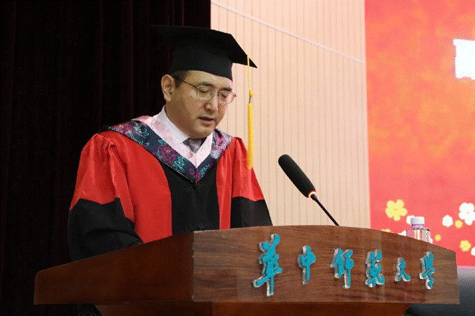 优秀校友代表周伟以风趣幽默的语言,回忆了他在桂子山的点滴经历,同时他也寄语在场的学弟学妹们,在走上工作岗位后,要多学习、多做事、多交良友,做有共情、有激情、有兴趣的人,背负起时代赋予的使命,做最好的自己,做平凡夜空中最亮的星。