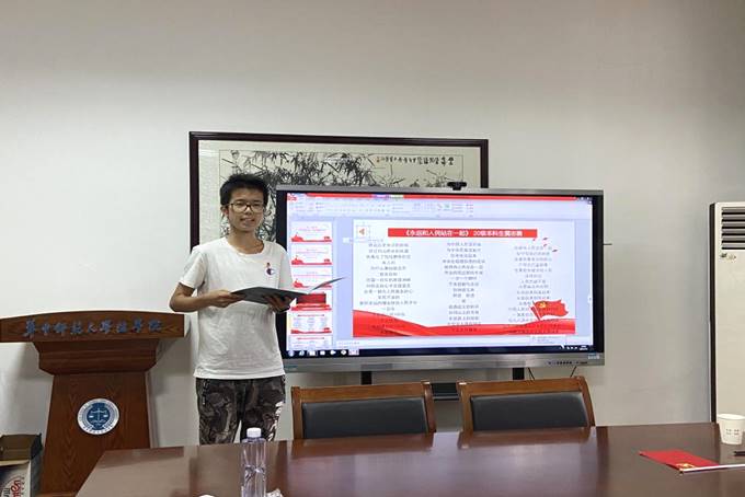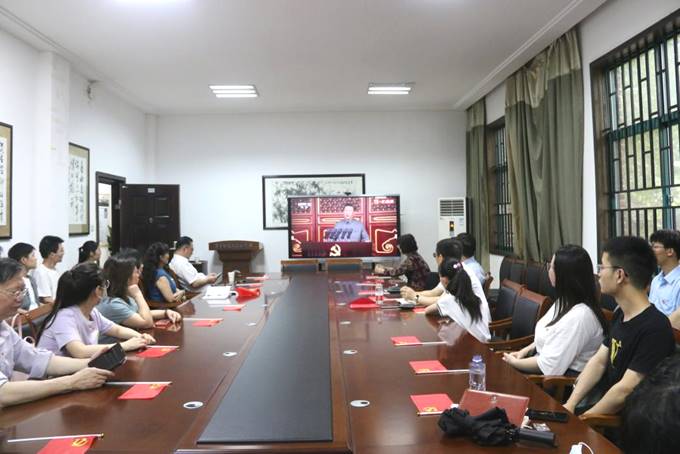随后,大家集中观看了前期征集到的学院师生党员们对中国共产党百年华诞祝福作品的视频,法学院2020级本科生黄志勇现场朗诵了自己的原创作品《永远和人民站在一起》,为党的生日献礼。他在诗中提到:我们是新时代青年,我们最爱党旗的鲜红,行动起来吧!在实现中国梦的实践中,谱写人生华章!