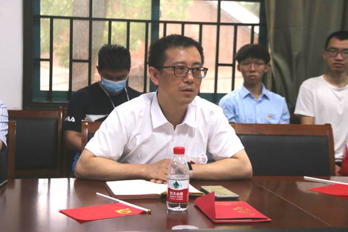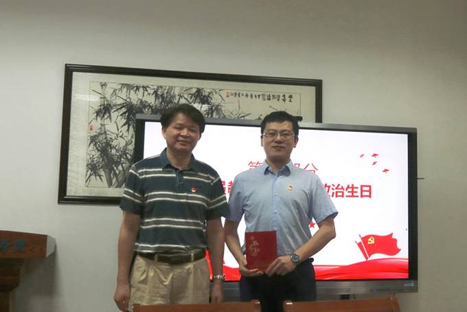 接着,学院党委为2006年7月入党的雷一鸣同志过政治生日,李克武为他赠送“政治生日”贺卡,勉励其不忘初心、永葆共产党员本色。雷一鸣随后结合成长中经历的重大政治事件和访学中国台湾时的亲身经历,回顾了自己入党的初心,并且勉励新加入党组织的学生要有忧患意识。他认为,青年大学生思想很活跃但也很稚嫩,思想上一定要坚定跟党走,加强党性锻炼,不能放松警惕。