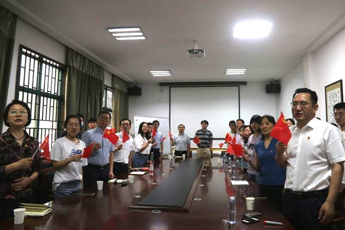 活动伊始,全体成员集中观看了庆祝中国共产党100周年庆典直播,共同感悟中国共产党百年光辉奋斗历程。杨臣表示:中国共产党胸怀千秋伟业,百年恰是风华正茂。站在新的起点,我们将牢记初心使命,践行党的宗旨,继续弘扬伟大建党精神,以“为有牺牲多壮志,敢教日月换新天”的大无畏气概,向着全面建成社会主义现代化强国的第二个百年奋斗目标奋勇迈进。作为一名高校基层党务工作者,我们将持续加强党对教育领域的全面领导,更加夯实党的基层基础,强化政治建设,牢记“国之大者”,全面贯彻党的教育方针,推进落实立德树人根本任务,加强思想政治教育,引领青年学生将奋斗融入党和人民事业,努力成为实现中华民族伟大复兴的先锋力量。随后,由万枞带领新党员进行入党宣誓、老党员重温入党誓词。