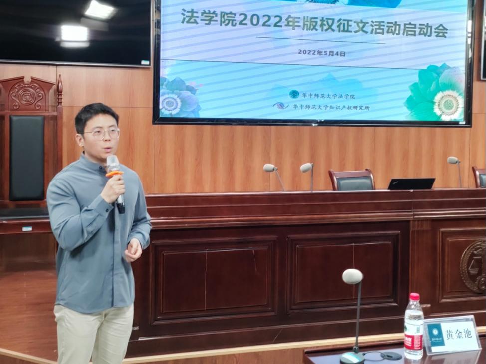 法学院讯(通讯员 吴旭丽)为对接国家版权局全国大学生版权征文活动,法学院版权征文活动启动会于2022年5月4日在八号教学楼模拟法庭举行。法学院党委书记杨臣、法学院副院长文杰教授、知识产权研究所所长刘华教授、杨涛副教授、周莹副教授及法学院百余名本科生、硕博研究生参加了会议,黄金池老师主持会议。