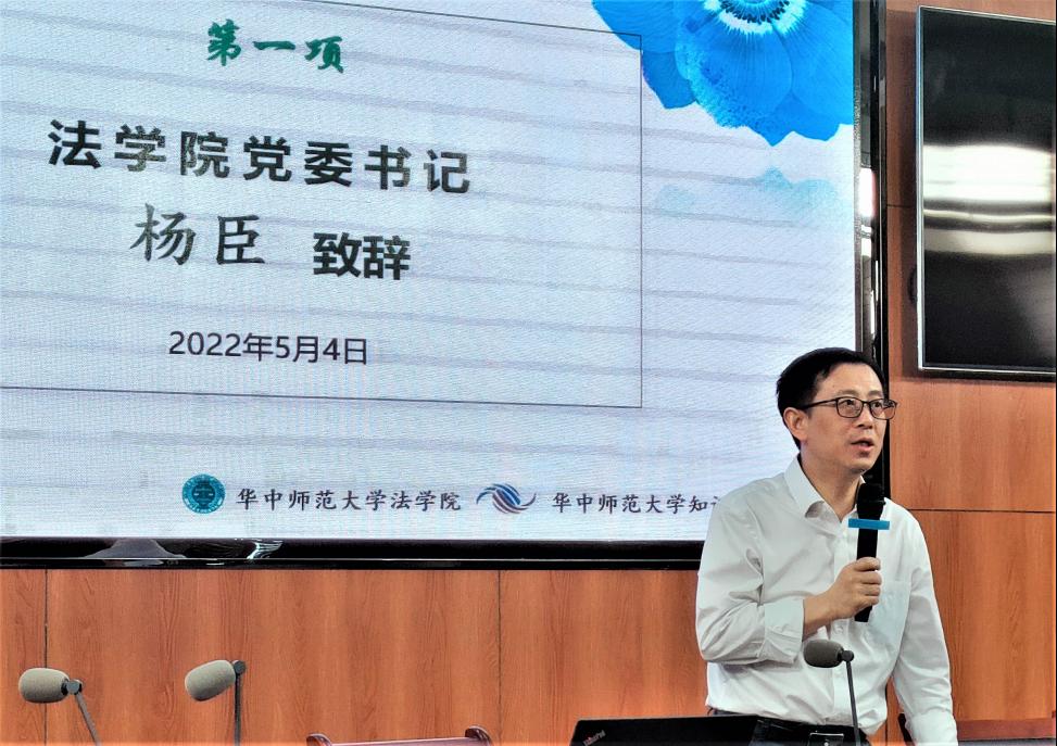 会议第一项是法学院党委书记杨臣致辞,杨书记对此次活动作了指导性发言,对研究所近些年来取得的成就予以充分肯定,鼓励全体法学院学生积极奋斗、砥砺前行,踊跃参加国家大学生版权征文活动,不断提升学术水平,取得长足的进步。