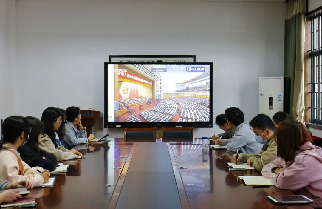 3月5日上午,第十四届全国人大一次会议在北京召开。学院组织学生代表,在学院二楼会议室集中收看开幕会。