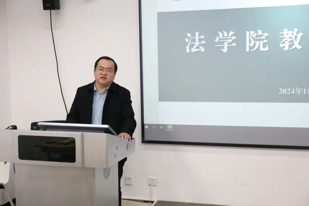 11月29日,法学院教职工大会在法学院103教室召开,学院全体教职工参会,大会由院党委书记杨臣主持。