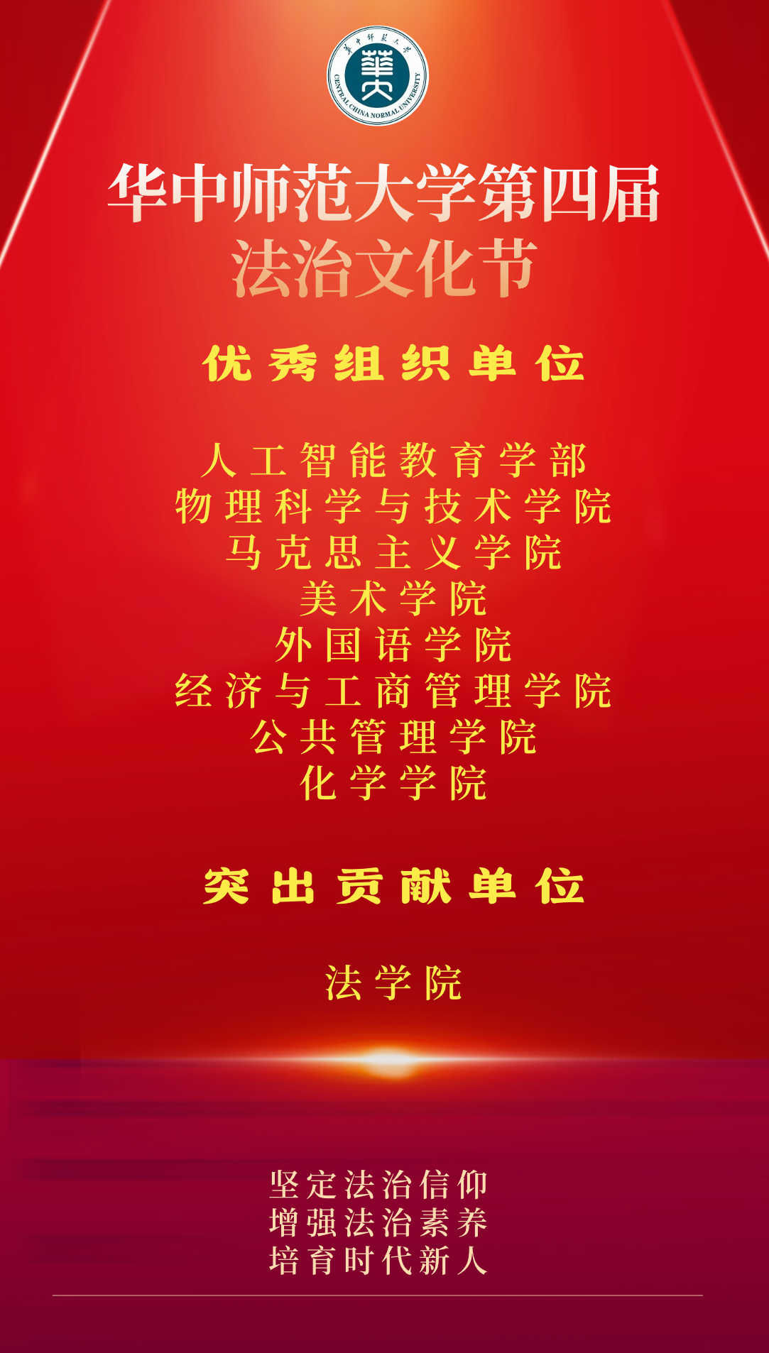 至此,华中师范大学第四届法治文化节圆满落幕。本次法治文化节通过一系列内容丰富、形式多样的活动,充分引导广大师生坚定法治信仰、增强法治素养。全体师生将继续深入学习贯彻习近平法治思想,贯彻党的二十大、二十届三中全会精神和全国教育大会精神,不断改进法治宣传教育,建设良好的校园法治文化,引导广大师生坚定法治信仰,增强法治素养,为推进依法治校,培育时代新人不懈努力,为繁荣社会主义法治文化和建设法治中国贡献华师力量。
