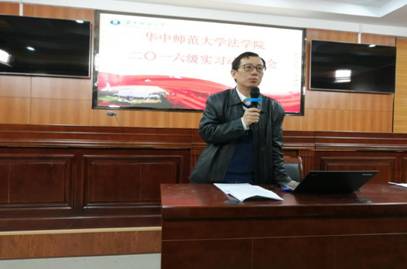 王勤老师详细介绍了本次实习的具体情况和考核要求。此次实习共有115位同学参加;本次实习共联系了9个实习实训基地,包括1个检察院、4个法院、4个律所。为加强对本科生实习的日常管理,由董小红老师、徐妮娜老师、李琛老师、杨峻老师、肖蓓老师、李雯静老师、李云龙老师、杨婷老师等分别担任各实习小组的带队老师。他还对本次实习的过程管理和实习结束后的考核要求进行了说明。