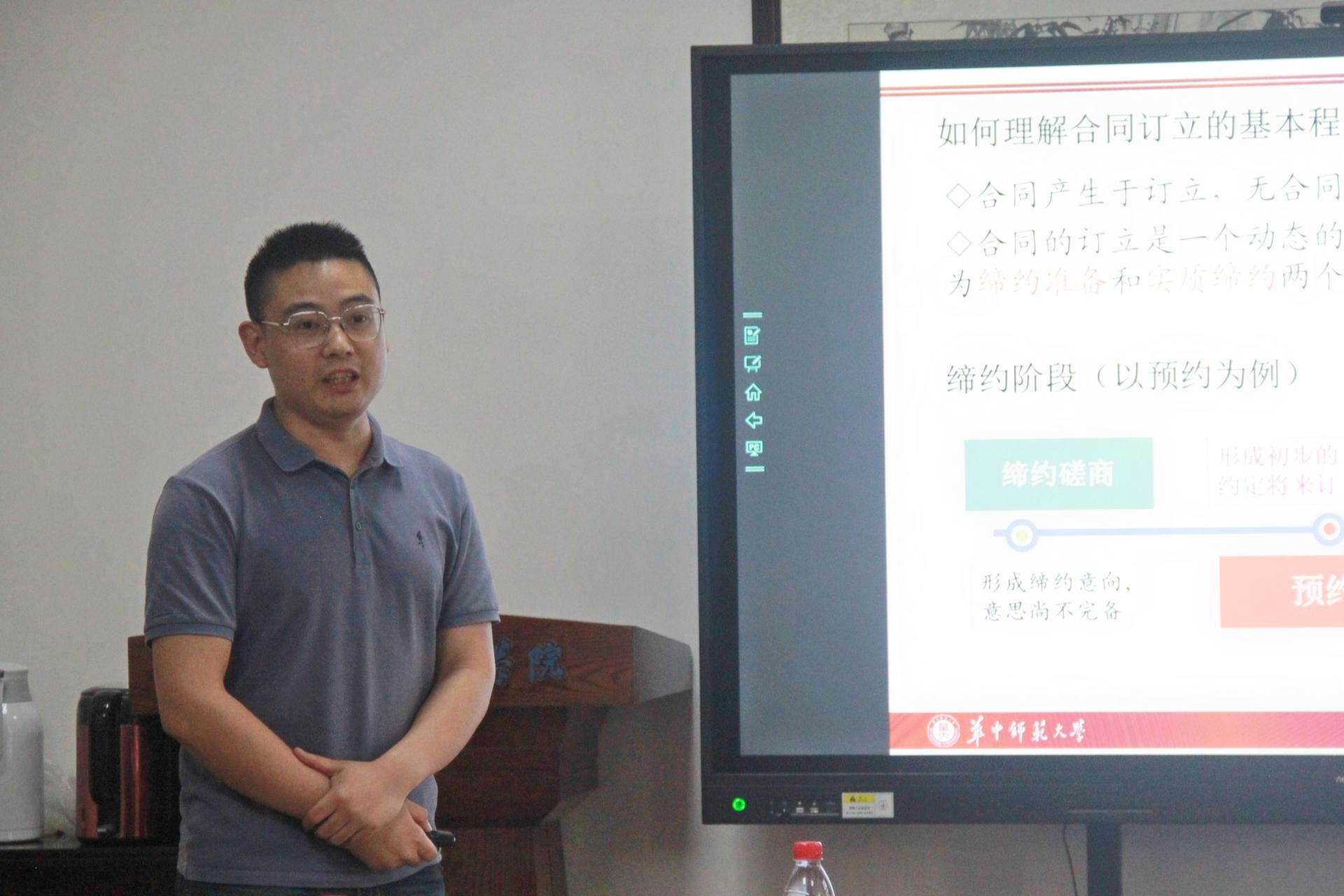 法学院讯(记者 潘杰昌 邹媛奕)为深入学习贯彻习近平新时代中国特色社会主义思想,落实中共中央、国务院《关于全面深化新时代教师队伍建设改革的意见》要求和中共中央办公厅、国务院办公厅《关于加强新时代法学教育和法学理论研究的意见》意见,进一步提高法学院青年教师的教学水平和业务素质,学院于5月19日举行2023年度青年教师教学竞赛。学院符合年龄条件的青年教师都参加了竞赛。院长丁文,副院长文杰、肖登辉,工会主席李琛,教学委员会委员刘元璋、李寿廷、程亚萍等担任评委。活动由肖登辉主持。