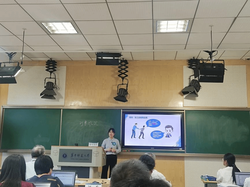 本次竞赛共分为教学设计、课堂教学和反思答辩三个环节。根据参赛课程《证据法学》的特点,以法学小案例为抓手,陶文婷老师精心准备了各节段的教学设计,并在课堂教学环节,以严密的逻辑和生动的语言,将刑事推定的概念、原理等知识点娓娓道来,营造了良好的课堂氛围,传递了法治理念。在反思答辩环节,陶文婷老师着重从教学内容、课程思政等方面介绍课程,逐一回答评委的提问,获得了评委的肯定与赞许。
