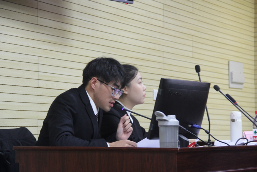 在石先钰教授、武小川副教授和黎珞副教授的指导下,参赛队员在文书撰写、证据分析、法律适用、法庭发问、举证质证、法庭辩论、庭审用语、庭审礼仪等方面展开了较为充足的训练。在“八进四”的淘汰赛阶段,上场队员面对由资深专家教授组成的合议庭和强劲对手的提问临危不乱,凭借对赛题的扎实研究、娴熟的庭辩技巧和流利的表达能力敏捷应答,与对手展开了决胜局较量,虽然最终以微弱差距惜败郑州大学,但两位队员以清晰的论证逻辑、突出的思辨能力、标准的庭审回应赢得了评委和在场观众的认可。