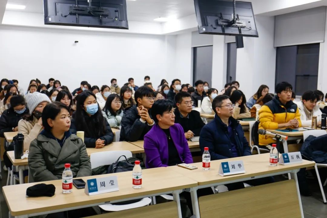 在与谈环节,杨涛鼓励同学们要学习两位主讲人的优秀品质,从其中汲取力量,并建议大家以兴趣为导向,敢于发掘自身亮点,积极探索,持续进步。周莹希望同学们要善于认识自我,找到推动自身发展的动力源泉,同时也要严格要求自己,在自己所选择的道路上,更加坚定地走下去。