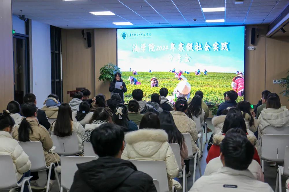 法学院讯(通讯员 方向晨 邓欣怡 赵海东)2月29日,法学院2024年寒假社会实践分享会在学院大厅举行,团委书记张永基、团委副书记姜孝文,辅导员樊星锴、冷东哲、焦修齐参加分享会。分享会由本科生团总支社会实践部成员李璇政主持。