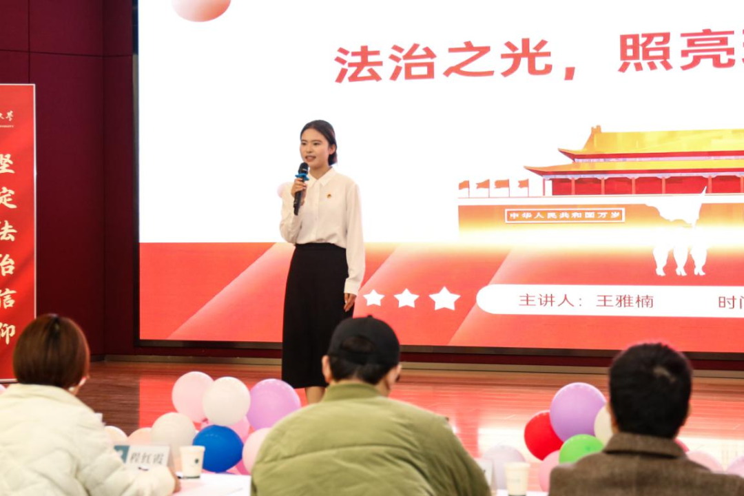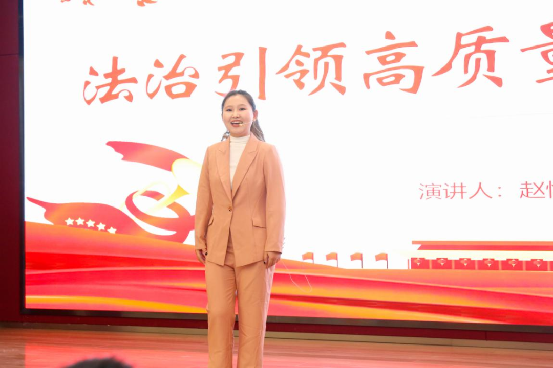 王雅楠的演讲重在“法治之光,照亮现代化征程”。她提到,法治正为经济现代化建设注入强劲动力,是社会公平正义的守望者、政治现代化的基石。在现代化建设的宏伟蓝图中,法治如同一座坚固的灯塔,照亮着我们前行的道路。