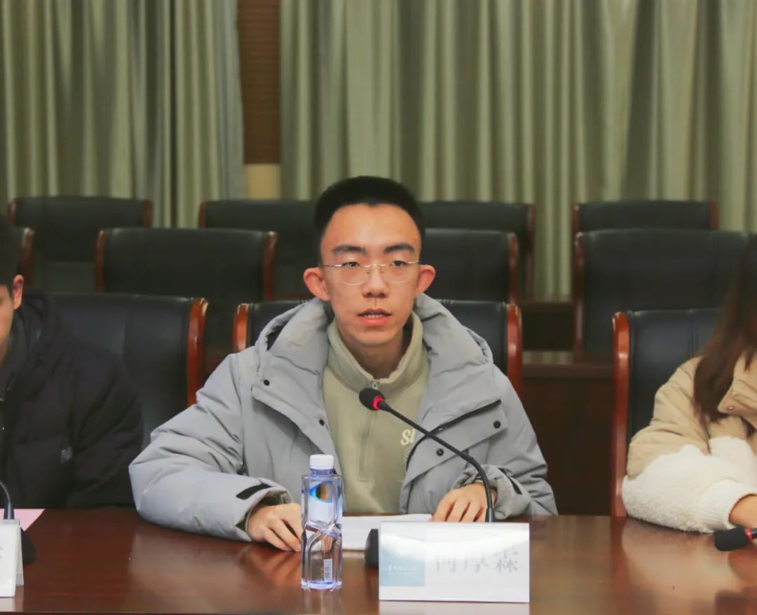 第四期学生代表何厚霖发言。入选博雅班是一次宝贵的成长机会,他代表全体成员做出庄重承诺:将以坚定信念、扎实学识、不懈追求,肩负学院的殷切期望。