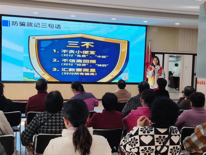 在“守好钱袋子,幸福享晚年”主题宣讲环节,志愿者结合江岸区“爱之康”公司保健品诈骗等真实案例,系统剖析了“神药神器”“投资理财”等四大常见骗局,并总结出“三不”防骗口诀。