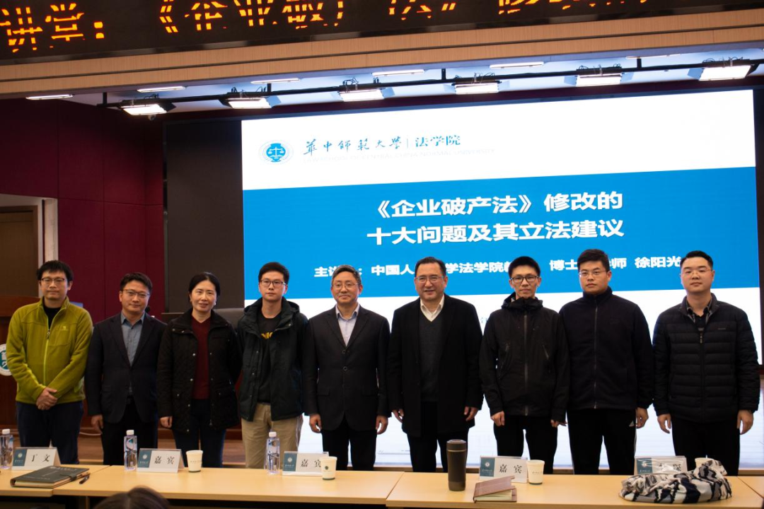 12月6日,中国人民大学法学院教授、博士生导师徐阳光应邀在文科科研楼一楼报告厅作题为“《企业破产法》修改的十大问题及其立法建议”的学术讲座。此次讲座由我院院长丁文主持,李琛、黎珞、叶雄彪、张罡、李运达等教师参加,本科生与硕士生踊跃参与。