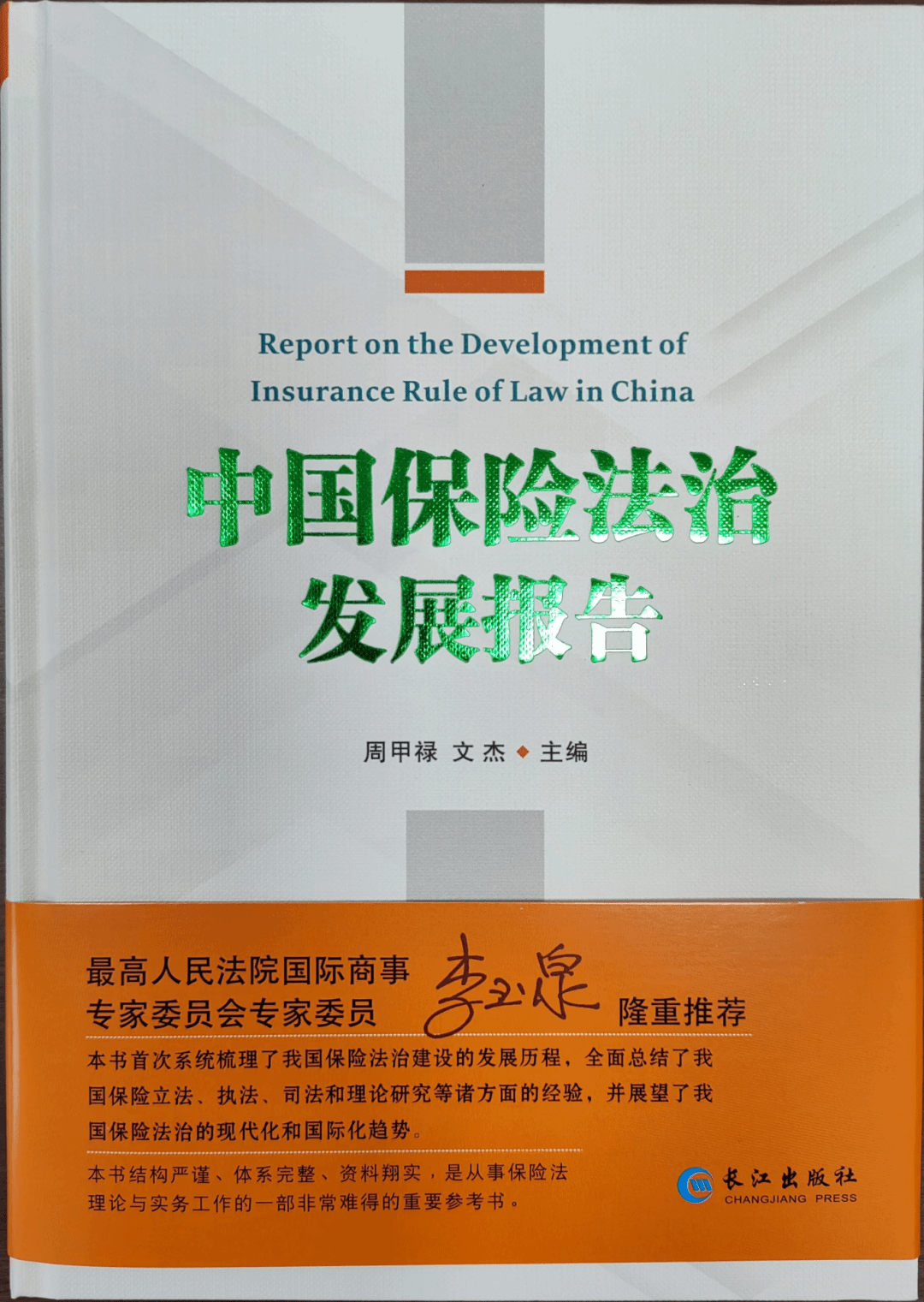 近日,我院文杰教授等主编的《中国保险法治发展报告》由长江出版社出版。该书是我国第一部保险法治发展报告,首次系统梳理了我国保险法治建设的发展历程,全面总结了我国保险立法、执法、司法和理论研究等诸方面的经验,并展望了我国保险法治的现代化和国际化趋势。最高人民法院国际商事专家委员会专家委员李玉泉先生隆重推荐:“本书结构严谨、体系完整、资料翔实,是从事保险法理论与实务工作的一部非常难得的重要参考书。”