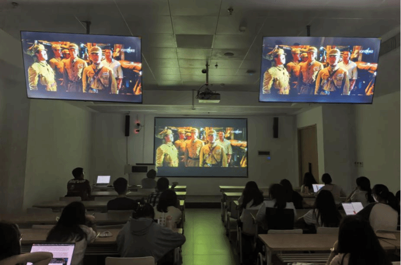 影片以真实历史为基底,通过志愿军战士伍氏兄弟的视角,再现长津湖战役的壮烈场景。零下四十度的严寒战场、志愿军战士以冻土豆果腹的细节、杨根思“人在阵地在”的誓言,让在场学子体会到革命先烈的坚定信念。