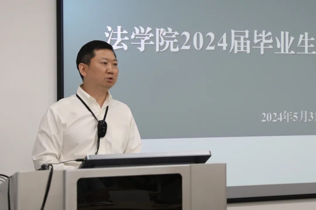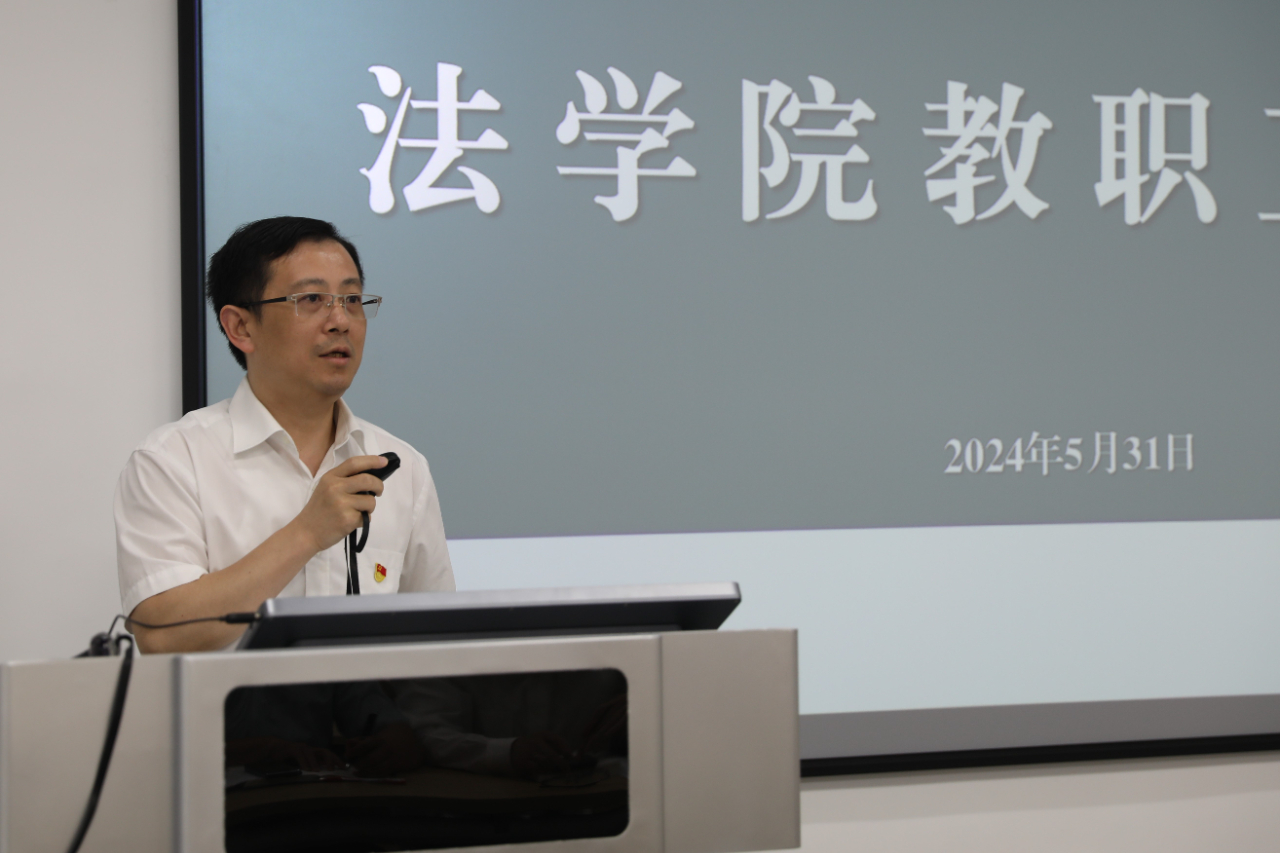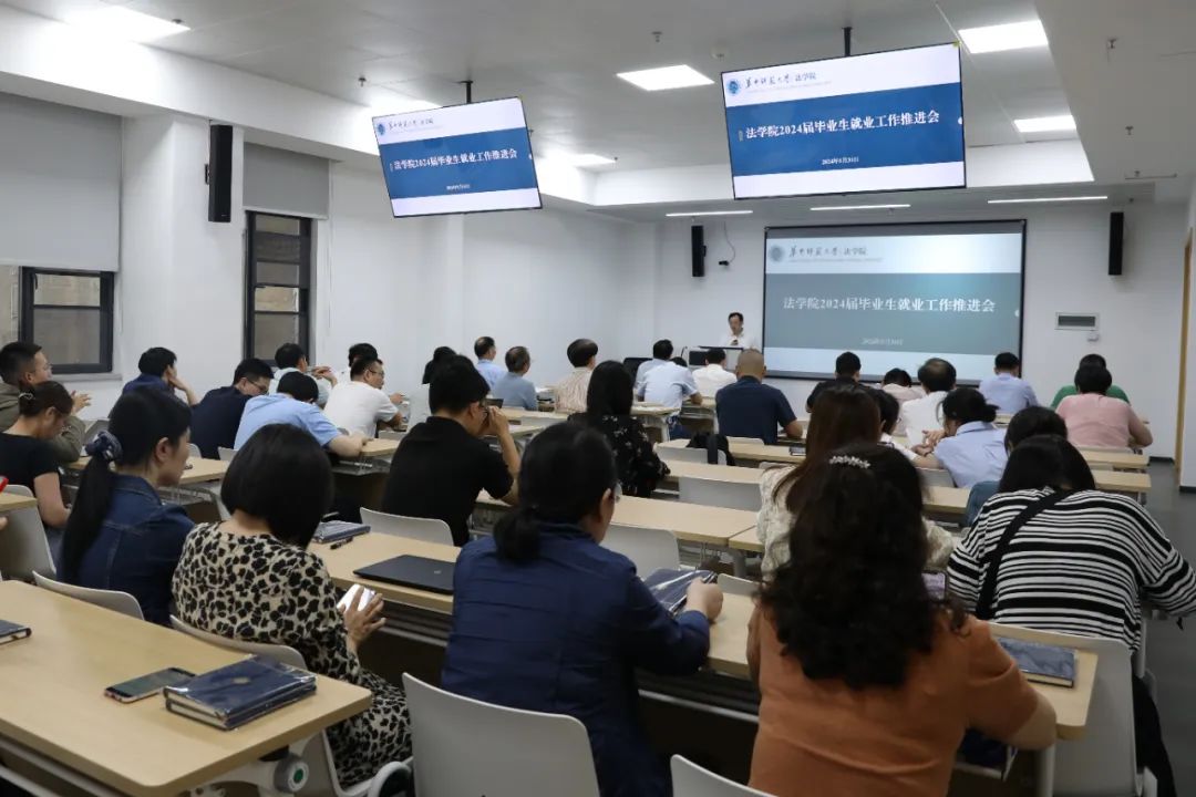 法学院讯(记者 余林倩 蒋池菲)为深入贯彻学校2024年就业工作推进会精神,推进就业工作,5月31日,法学院召开教职工大会。本次会议聚焦就业专题,分析就业形势,并部署了下一阶段就业工作的重点与方向。全体教职工参会,会议由学院党委书记杨臣主持。