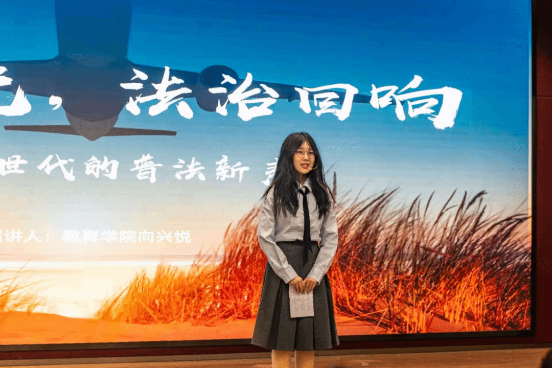法学院的黄严知予则以自己的普法实践为例,强调青年要坚守为民传法的初心,把法治故事写到祖国大地上。