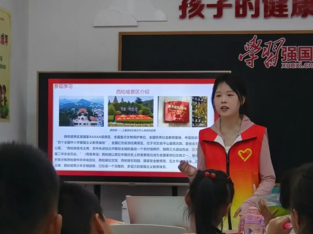 7月23日至24日,宣讲团成员李畇霄走进武汉市康乐里和融侨华府暑期托管班,为社区的孩子们带来了别开生面的红色教育。李畇霄以“传承红色基因,感悟精神伟力”为主题,从党中央“进京赶考”的出发地——石家庄市为引入点,通过生动的语言和丰富的图片资料,将西柏坡的历史底蕴、精神内涵与时代价值向孩子们娓娓道来。