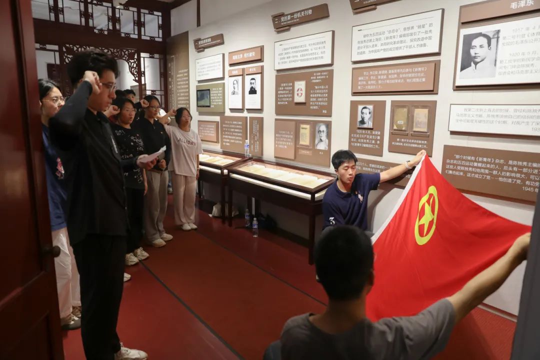 在《新青年》编辑部旧址,实践团聆听中国20世纪初思想变革的历史。通过展馆陈列的照片、物品,穿越百年,感受新文化运动热潮,回顾那段艰辛而又辉煌的奋斗历程。