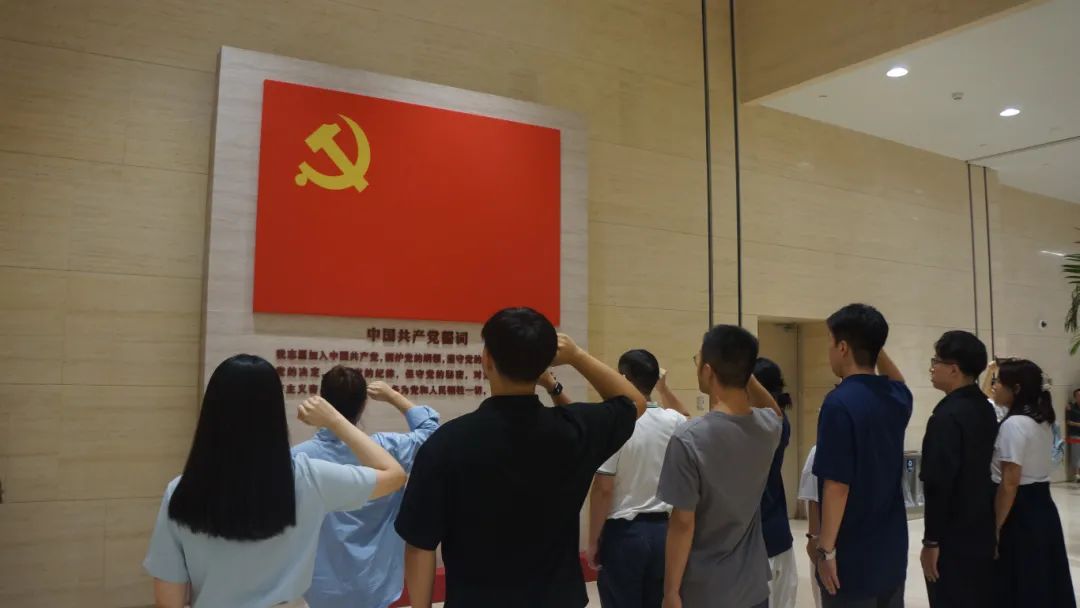 在中共一大纪念馆的宣誓大厅,在鲜艳的党旗下,万枞带领全体党员同志重温入党誓词,重忆入党初心,再次对党作出庄重承诺。