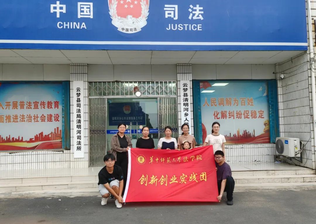 为深入学习贯彻习近平新时代中国特色社会主义法治思想,深入了解基层司法工作现状,8月6日,法学院以法保“未”实践队(以下简称“实践队”)前往孝感市云梦县清明河司法所进行“百所观察”实地调研活动。