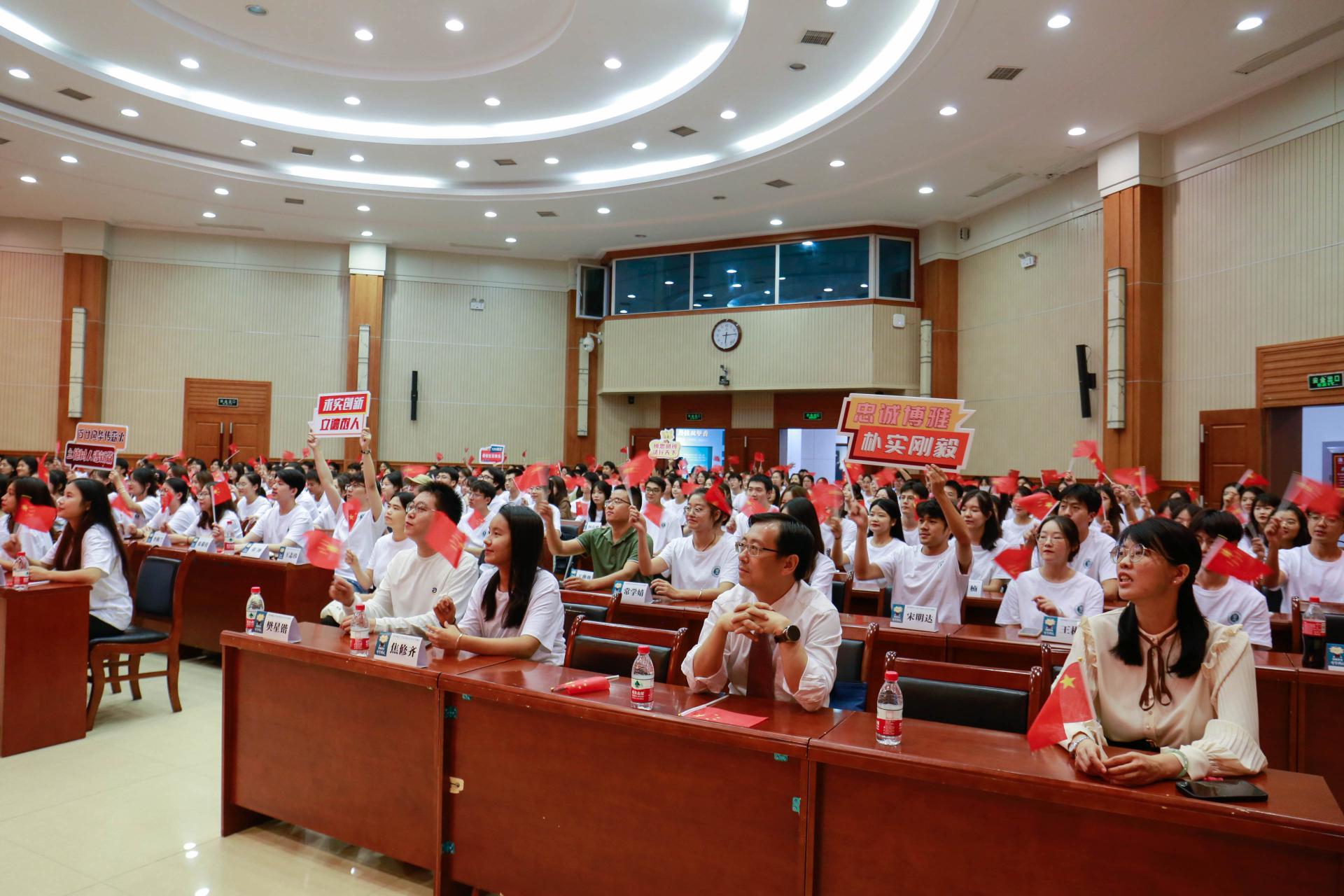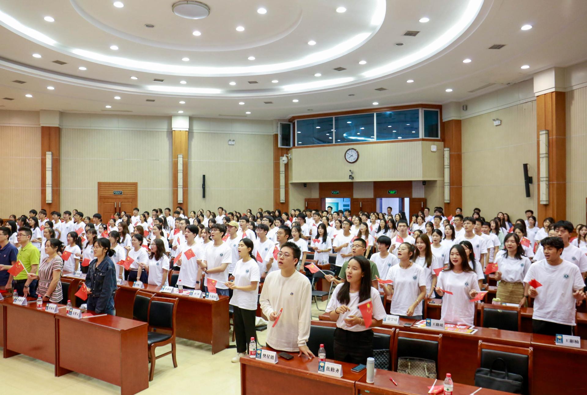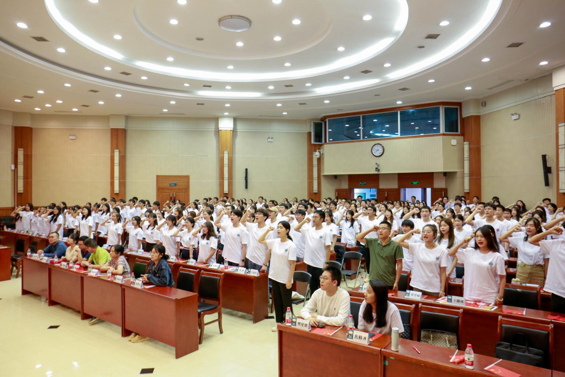 全体新生进行集中宣誓表达作为华师法科生挺膺担当的自觉和“请党放心、强国有我”的奋斗目标。