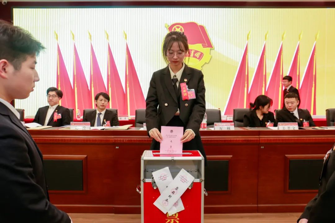 丁文在闭幕词中指出,本次大会的召开对团结带领全院团员青年与党同心、跟党奋斗,在建设世界一流大学和推进学院高质量发展的征程中贡献青春力量具有重要意义。他希望各位团员代表宣传、贯彻、落实好本次大会的精神,激励和带领全院团员青年以更加昂扬的精神状态投入到学习和生活中去。他代表学院向新一届团委、全院团员青年提出三点希望:一是要紧跟党走,做理想远大、道德高尚的有志青年;二是要勤于专研,做善于实践、学用结合的有为青年;三是要创新担当,做攻坚克难、拼搏进取的奋斗青年。同时,他嘱托学院团员青年要牢记使命,不负重托,始终保持蓬勃朝气、昂扬锐气和浩然正气,踔厉奋发、勇毅前行;希望法学院共青团工作在新的历史条件下焕发出新的光彩,每一位团员青年最终都能够成为学院、学校和国家期望的高素质法治人才。