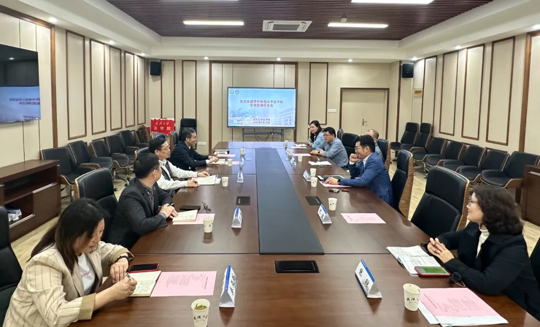 法学院讯(记者 法轩)4月17日下午,学院党委书记杨臣、党委副书记万枞、副院长文杰、党务干事秦亚琼、团委书记张永基一行赴武汉大学法学院调研交流。武汉大学法学院党委书记李霄鹍、党委副书记胡伟、副院长祝捷、黄志雄,研究生工作办公室主任张琼、团委书记余奕出席交流会。