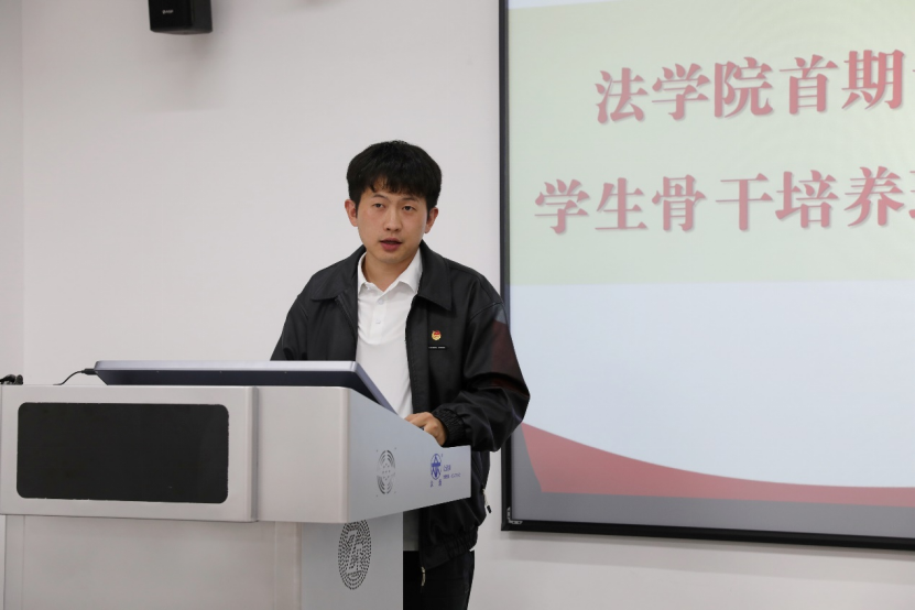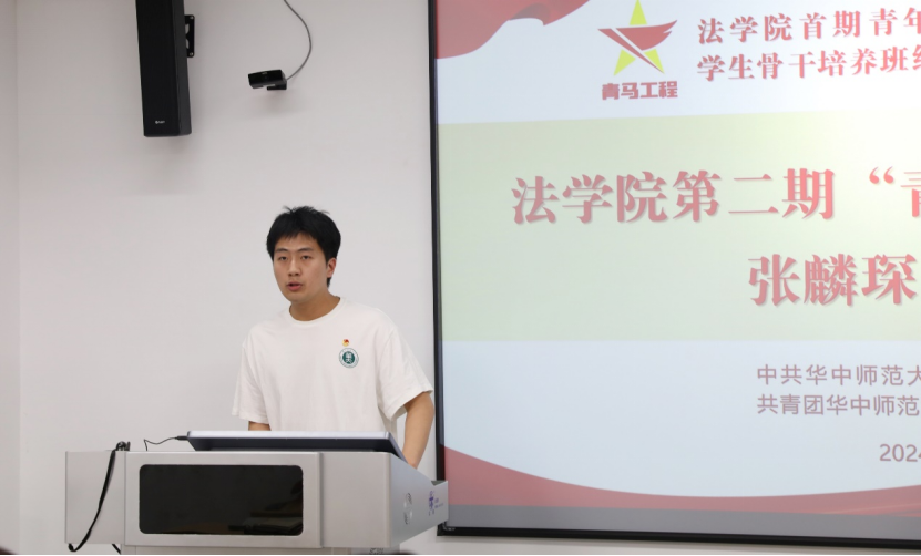 第二期“青马班”学员代表张麟琛发言,他表示,作为追求成为青年马克思主义者的法学生,应有自己的思与考、担与当、展与望,不断学习和领悟马克思主义的精髓,自觉做共产主义远大理想和中国特色社会主义共同理想的坚定信仰者和忠实实践者。