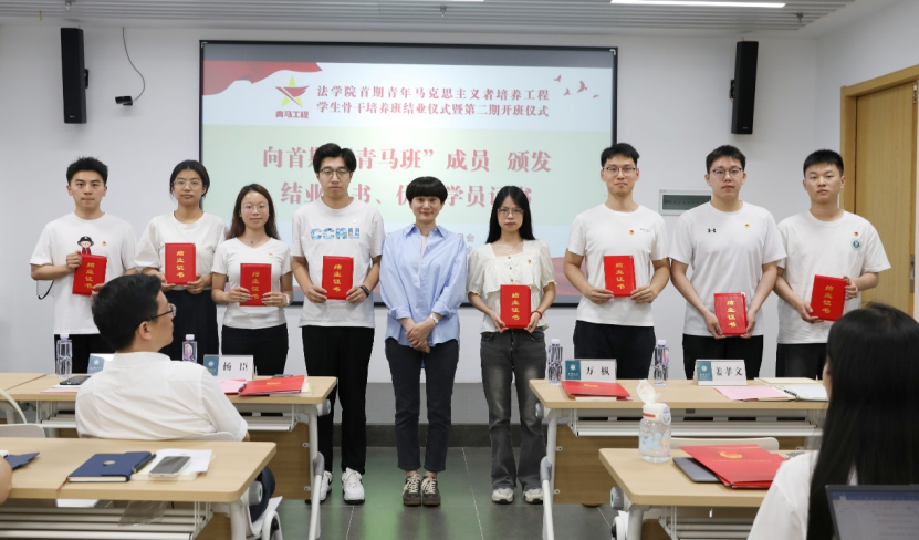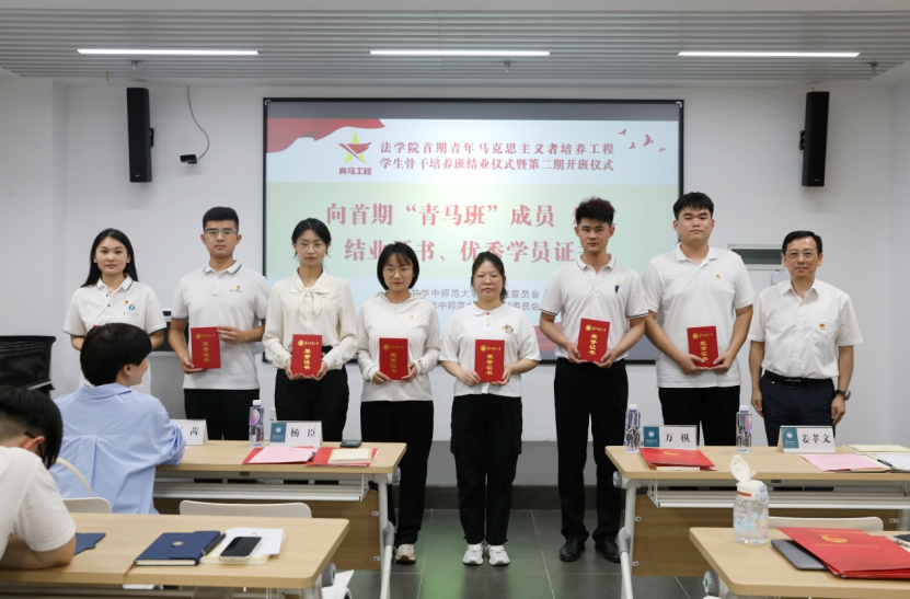 法学院讯(记者 余林倩 吴国栋)5月31日,法学院首期青年马克思主义者培养工程学生骨干培养班(下称“青马班”)结业仪式暨第二期开班仪式在学院103教室举行。学院党委书记杨臣,马克思主义学院副教授丁茜,学院团委副书记、“青马班”副班主任姜孝文出席仪式。学院首期、第二期“青马班”学员参加。仪式由学院团委书记、“青马班”班主任张永基主持。