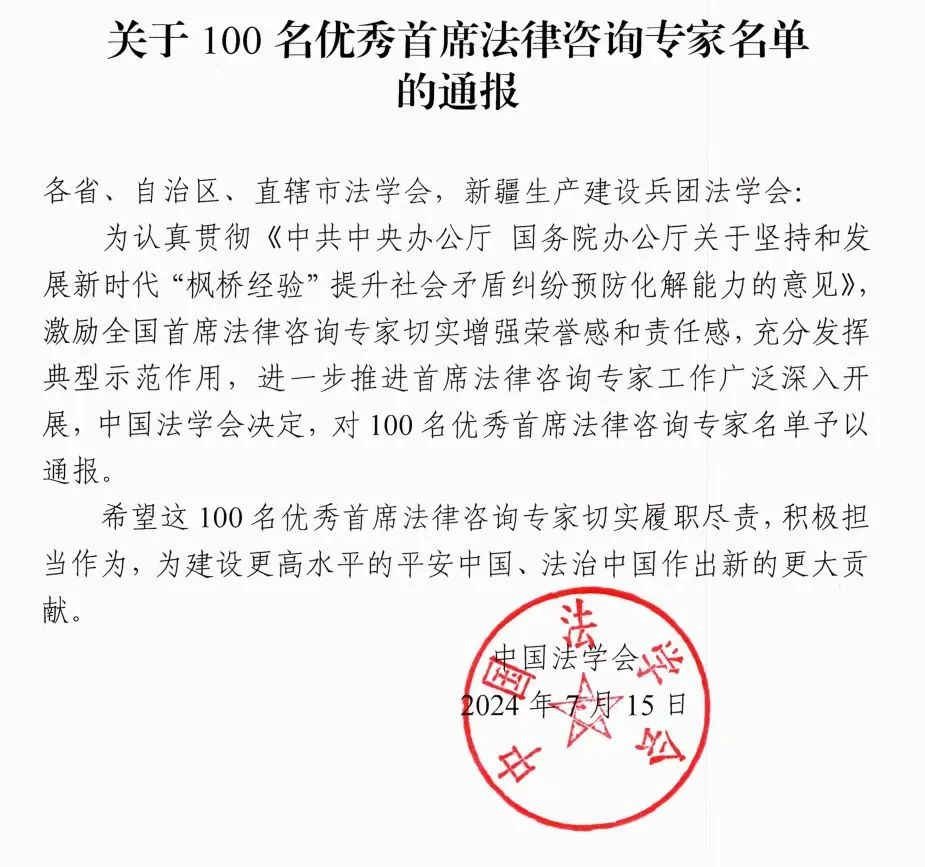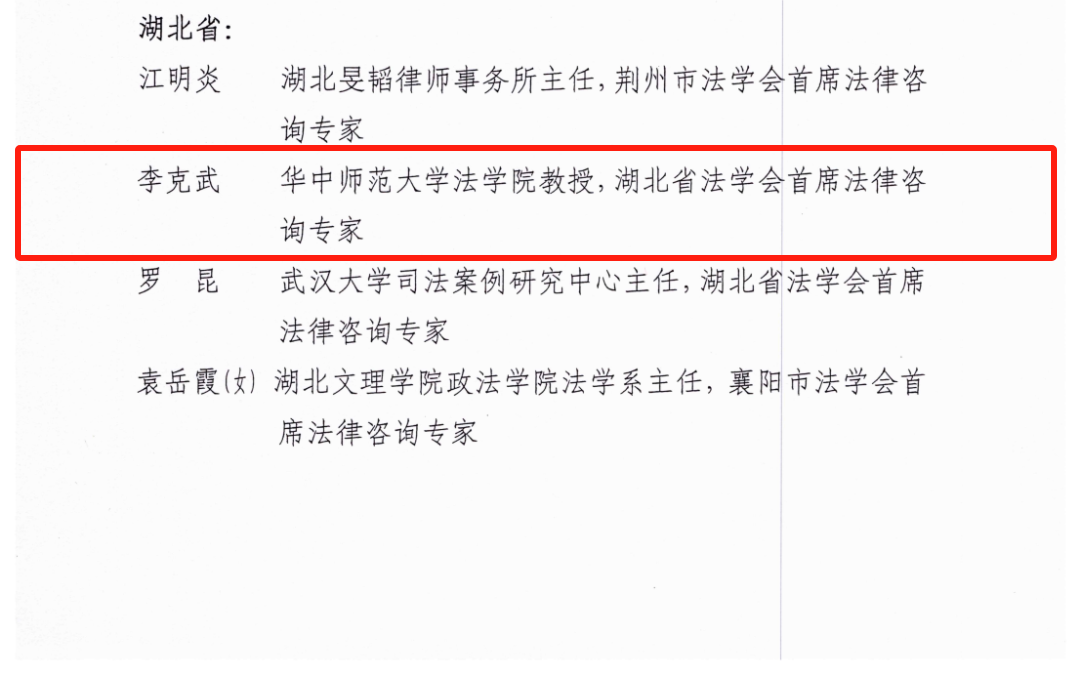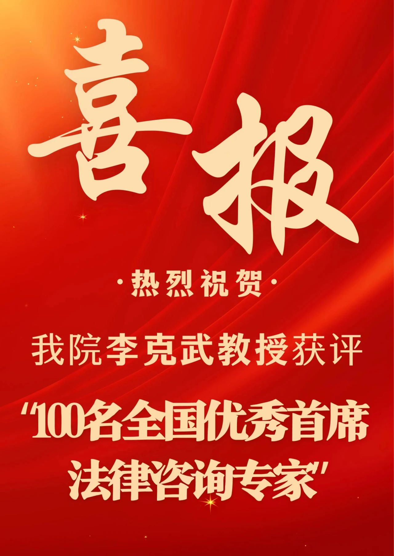 我院李克武教授荣获“全国优秀首席法律咨询专家”称号