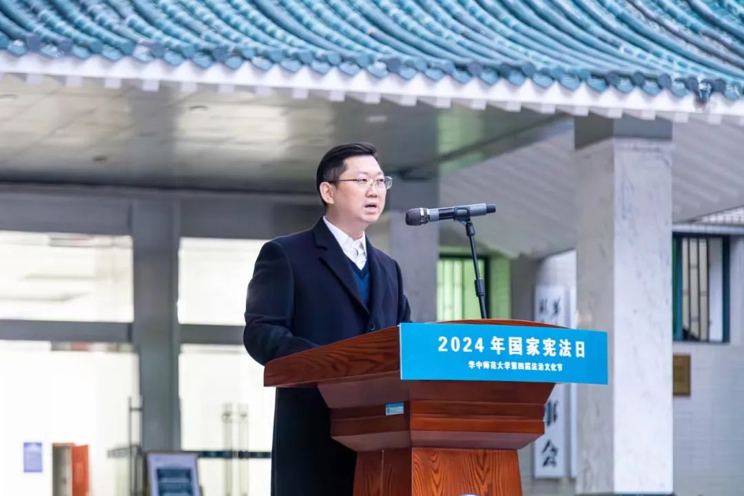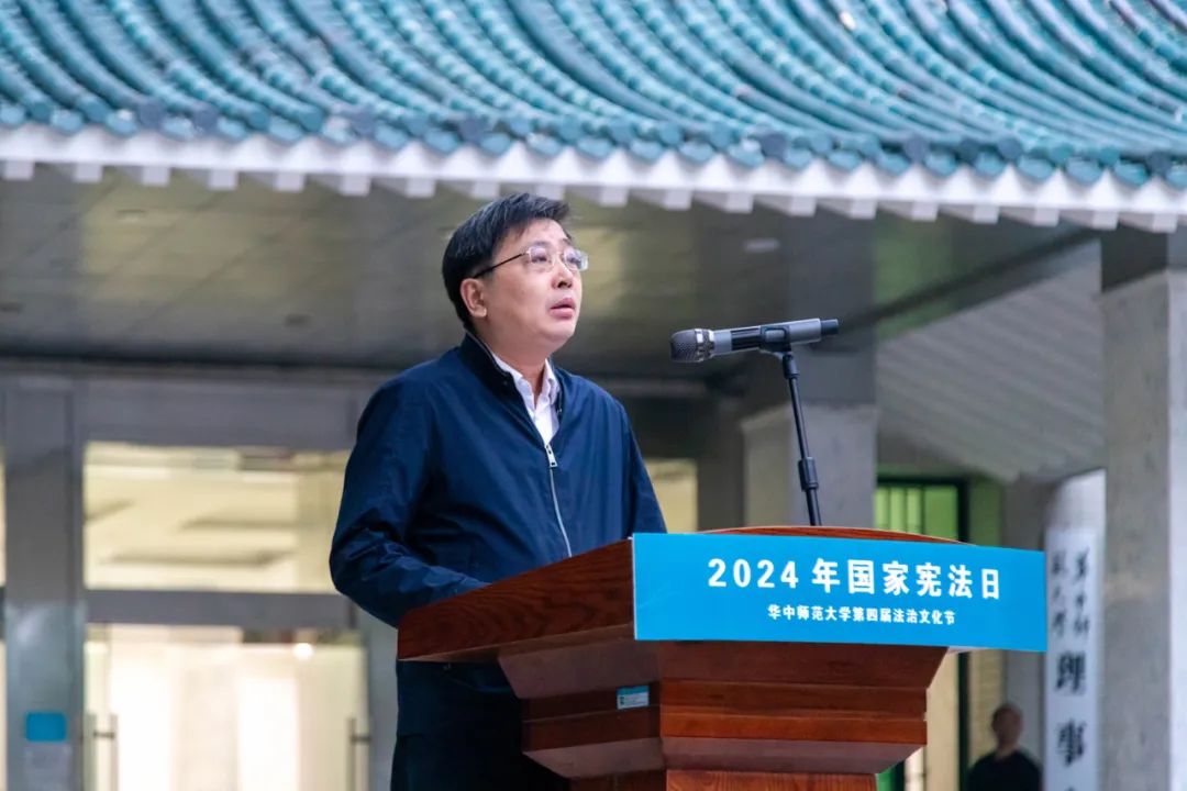 刘宏达在致辞中表示,法治是中国式现代化的重要保障,必须全面贯彻实施宪法,维护宪法权威。新时代全面依法治国的伟大实践表明,我国宪法是党和国家行稳致远、各项事业蓬勃发展、人民幸福生活的根本法治保障。刘宏达指出,我校高度重视法治教育特别是宪法宣传教育,把依法治校融入办学治校各方面。连续四年举办法治文化节,积极开展学习研讨、征文竞赛、展览观摩、志愿服务、法治宣讲等系列活动。刘宏达希望广大师生从我做起、从身边做起,主动学习宪法,做知法懂法之人;积极践行宪法,做守法用法之人;大力弘扬宪法,做尊法崇法之人,努力让尊法、学法、守法、用法在校园蔚然成风,为建设教师教育领先的世界一流大学筑牢法治保障。